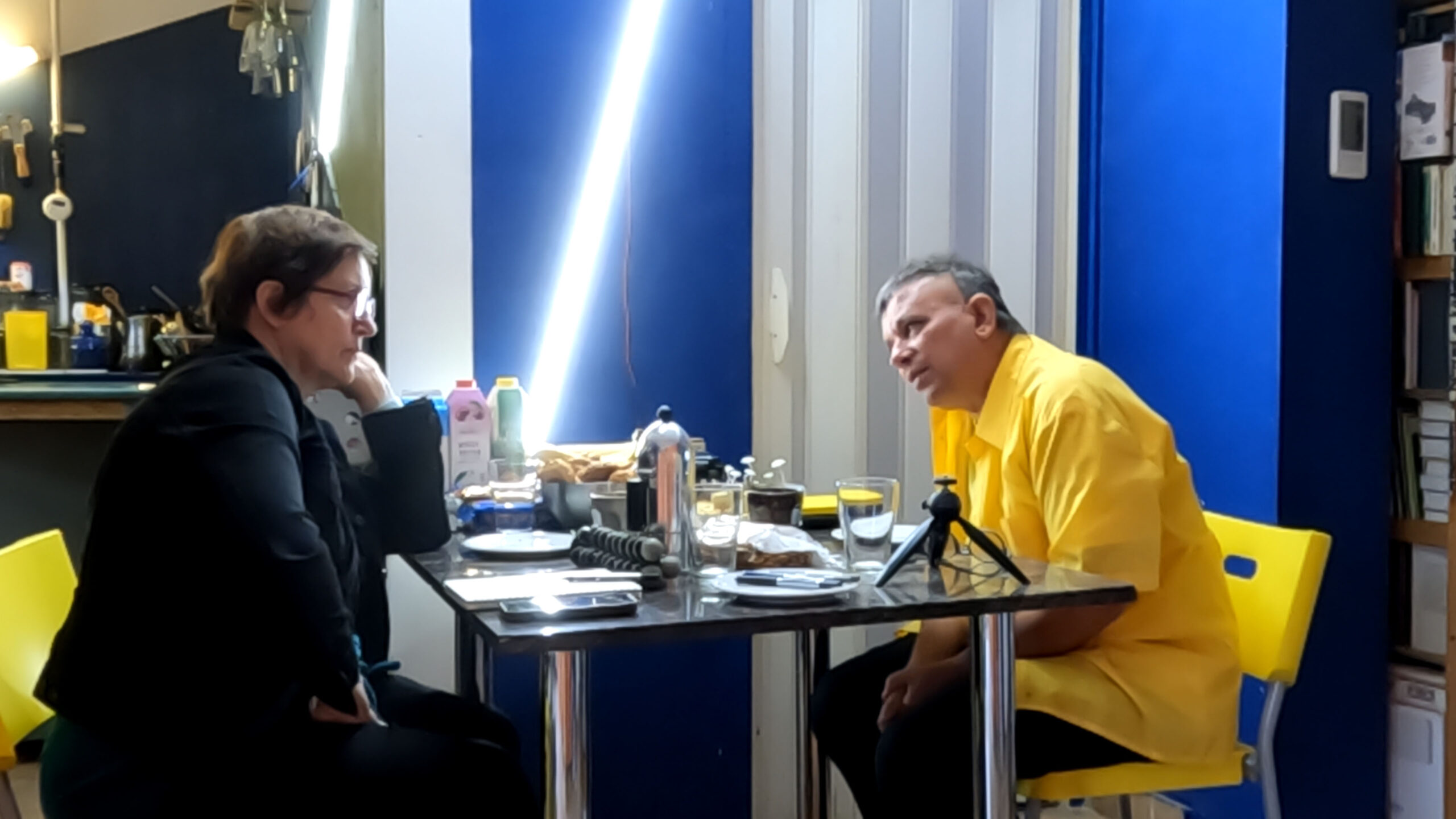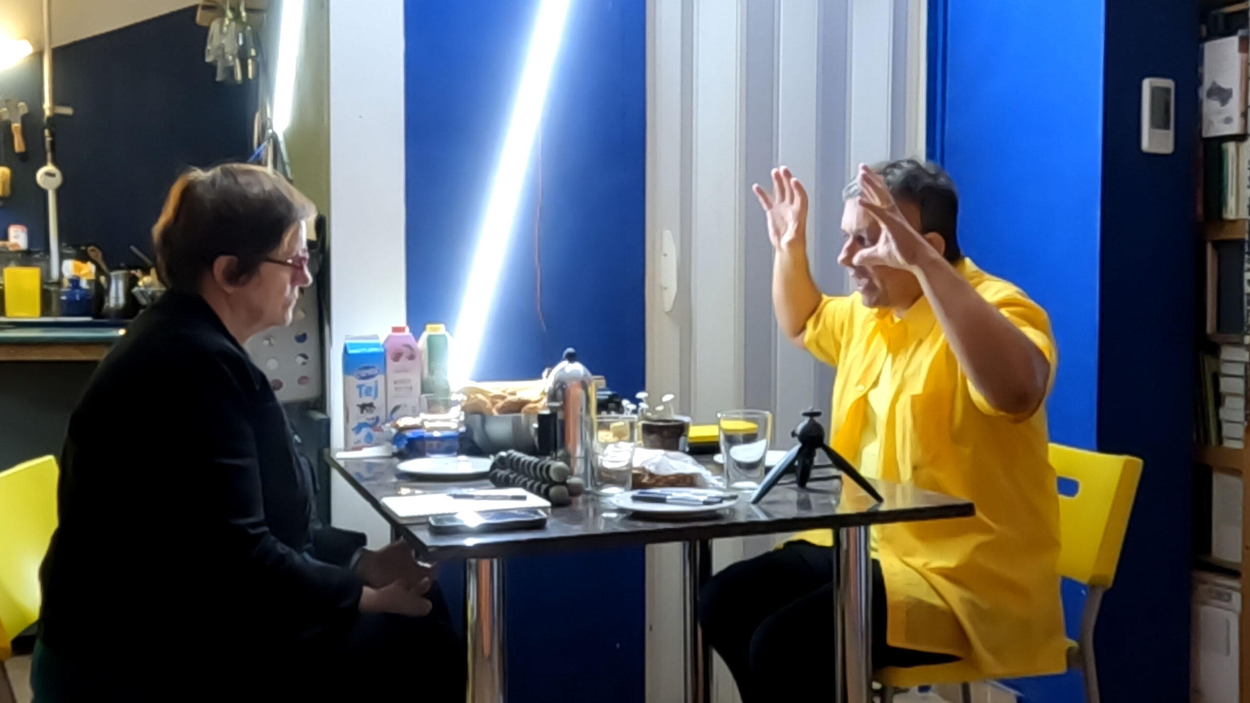 Németh Ilona (balra) és Koronczi Endre (jobbra) beszélget a konyhaasztalnál